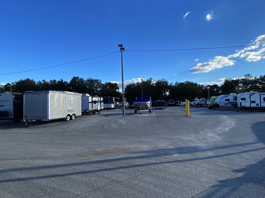 Spacious, hard-surface parking designed for RVs, boats, trailers, and oversized vehicles.